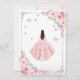 Inbjudan till rosa, silver och vita Quinceanera firande. Med brunettflicka i boll-klänning, skript, silver-fjärilar, rosa ros och tiara. Perfekt för en elegant prinsessan stil glam firande. Anpassa med dina egna detaljer. Skrivna Zazzle-inbjudningar eller digital utskrivbar mall för omedelbar nedladdning.
