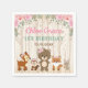 Rosa Blommigt Woodland 1:a födelsedagelådet Barnsh Pappersservett