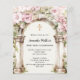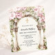 En stor marmorbåge dekorerad med rosa blommigtar och ett gyllene kor. Anpassa och lägg till namn och detaljer.