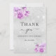 Ett tack för en 50-årsdag (eller vilken ålder som helst). En faux silver tittar färg. Dekorerad med rosa, violetta blommigtar och faux glitter damm. På framsidan, ett skript med stora bokstäver och texten: Tack, text, titel och datum. Tillbaka: Anpassa och lägg till tackkort och namn.