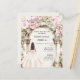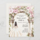 En stor marmor som dekoreras med rosa blommigtar. En tjej med vit klänning. 1 lakan = 1 inbjudan tryckt kant till kant.