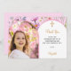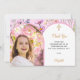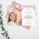 Lägg till ditt eget lodräts storleka foto. Ett rosa Arch-format foto ram. Dekorerad med rosa blommor och en gyllene kor. Anpassa och lägg till namn och tackkort.