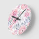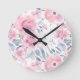 Rosa blommönster i vattenfärg rund klocka