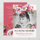 Under sorgens tider, finn tröst i de små detaljerna med våra eleganta dödsfallsinbjudningar. Personliga med möjlighet att inkludera ett foto av din älskade, erbjuder dessa inbjudningar en smakfull vit bakgrund som kan anpassas till valfri färg. Den känsliga nyansen av en rosa akvarellblomma och en anpassningsbar "Till minne av" -mall tillför en unik, hjärtlig touch till din avskedsinbjudan. Hedra din älskade med elegans och stil.