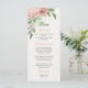 romantisk rosa blommor grönt löv botaniska bröllop-menyn