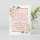 Rosa blommor Guld Marble Girl Baptism Inbjudningar