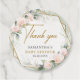 rosa blommor guld ram greenery babydusch gåvor etiketter