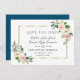 Rosa blommor Guld Ram marinblått Bröllop Spara Datumet