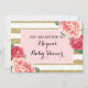 Personlig-babyduschinbjudningar i rosa och vitt med blommor i guld rand och rosa vattenfärg (observera att glitter endast är fotografisk, inte glitter).