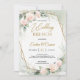 Rosa blommor och eucalyptus vigselbrunch-inbjudan