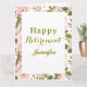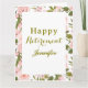 Fira en välförtjänt milstolpe med detta anpassade söta rosa blomstergrönska "Lycka till på pensionen"-kort!
