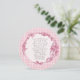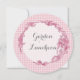 Vackra trädgårdslunchinbjudningar med rosa blommor på en bakgrund av rosa och vit rutig rutmönster.