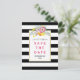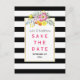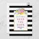 Vackra rosa och gula folklore-blommor, chic svart-vit randig mönster och din text på en vit ram pryder detta framstående vigsel-kort för datum. Välj det för din vår- eller sommar-vigsel.