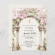 En stor marmorbåge dekorerad med rosa blommor och ett gyllene kors. Personifiera och lägg till ett namn och detaljer.