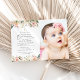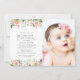 Bjud in vänner och familj med stil och sätt tonen för din speciella dag med denna eleganta inbjudan till första heliga kommunion. Designen har rosa och vita akvarellblommor och grönska på vit bakgrund.