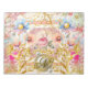 Rosa blomster collage ängsglad guld fågel monogram anteckningsblock
