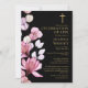 Denna svarta och guldfärgade eleganta rosa blomster kristna firande av liv och minne inbjudan kan anpassas med din information i klassisk typografi och ett foto av den avlidne på baksidan. Designad av Thisisnotme