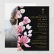 Rosa blomster kristet minnes- begravningsfoto inbjudningar