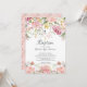 Vacker rosa blomster med guldblad och dopkors inbjudan med en matchande blomsterbakgrund för en extra speciell touch.