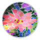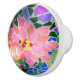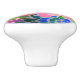 En söt rosa blomma bland blått vatten och gröna näckrosblad i fläckig solbelysning i en fotografisk bild av mosaik kakel konst på denna vackra dekorativa keramiska knopp. Detta är en av flera koordinerande keramiska knoppar Zen koi damm mosaik konst och fotografi av JLW_PHOTOGRAPHY.