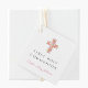 Rosa blomster religiöst kors flicka första kommuni gåvor etiketter