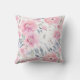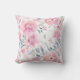 Denna kudde har rosa vattenfärg blommor.