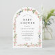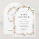 Perfekt för en baby shower som firar en liten flicka, denna blomsterbåge-inbjudan passar vackert med koordinerad dekoration och matchande brevpapper.