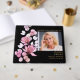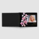 En svart och guld elegant rosa blomsterfoto begravning minnesfirande livets firande gästbok. Designad av Thisisnotme©