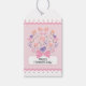 Lägg till en speciell touch på morsdagspresenterna med denna fina presentetikett. Med en delikat blomsterbukett bunden med ett rosa band, charmiga kärleksfåglar, trendiga kanter med scallopad kant och lekfulla prickar, är denna design både stilren och älskvärd. Anpassa texten på framsidan och personifiera de två ytterligare textområdena på baksidan för att skapa en verkligt speciell presentetikett. Denna design kommer att bli ett vackert tillskott till dina morsdagspresenter.