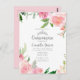 Denna vackra rosa blomsterformade Quinceañera-fest inbjudan postkort har vackra akvarellblommor och gröna blad ovanför en glittrande silvertiara. En underbar feminin och flickaktig inbjudan för din tonflickas 15-årsdag. Flirtiga och feminina peonior skapar en söt ram runt den eleganta grå skriften.