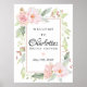 Rosa blomsterguld bröllopsfest välkomstskylt poster