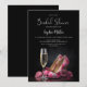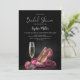 Bjud in dina vänner och familj att delta i din bröllopsfest med denna eleganta inbjudan med rosa blomsterhöga klackskor och ett glas champagne. Du kan enkelt lägga till alla nödvändiga detaljer i den anpassningsbara texten. Välj mellan olika papperstyper och hörnstilar för att göra dina inbjudningar unika. Dessutom har du möjlighet att ladda ner inbjudan om du föredrar ett digitalt format.