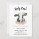 Rosa blomsterko med ko-mönstrad inbjudan