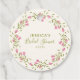 Denna bröllopspresentfavorit-tag framhäver en delikat rosa blomsterkrans med mjuka gröna blad på en elfenbensvit bakgrund. Den cirkulära designen och den eleganta stilen skapar en romantisk, trädgårdsinspirerad look perfekt för bröllopspresentfavoriter eller presentkort. Idealiskt för vår- och sommarfiranden eller feminina blomster-teman. En vacker avslutande detalj för dina evenemang.