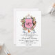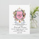 Rosa blomsterkrönt monogram Guldhund Inbjudningar