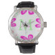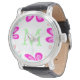 Rosa blomstermonogram, lägg till namn brev grönt l armbandsur