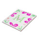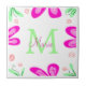 Rosa blomstermonogram, lägg till namn brev grönt l kakelplatta