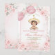 Dammigt rosa söt flicka Charra mexikansk Bautizo dop inbjudan Kors