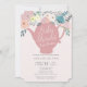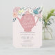 Rosa blomsterte-kopps-barnkalas inbjudningar