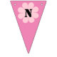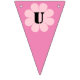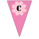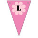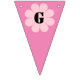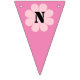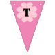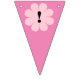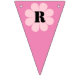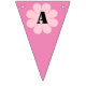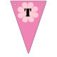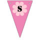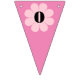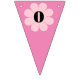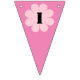 Baby rosa buntar flaggor med "Grattisar". Text och bakgrund i färg kan anpassas.