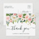 Med det här bröllop-tacket har du färgat färgen på vykortet i rosa, vitt och grönt löv. Om du vill ha en mer avancerad anpassning av den här designen klickar du på länken Anpassa ytterligare. Matchande objekt är också tillgängliga.