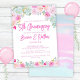 Rosa Blue lavender Peach blommigt 5:e Bröllop-årsfestinbjudan med ett modernt teckensnitt.