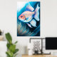 Rosa Blue Chalk Teckning Fish IV Poster