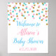 Anpassningsbarnas välkomstskylt poster för babydusch eller födelsedagsfest i ljusblå, ljus rosa och guld glitter konetti mönster. Perfekten för en gender visar babyduschen.