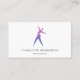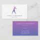 Affärskortet på Dance School Instructor har en elegant med minimalistisk rosa och blå gradientsilhuett för en dansare på den vita bakgrunden. Kortets baksida är blå rosa med vit personlig text. Om du behöver hjälp med att anpassa det här affärskortet, tveka inte att kontakta mig via Zazzle.