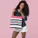 Rosa blå gräns strimlade mönster, vilket gör shopping bag mer fantastisk. Prova det och din feedback.