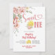 Rosa Blush Blommig Citron Söt Ettårs inbjudan