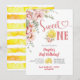 Rosa Blush Blommig Citron Söt Ettårsfest Inbjudningar