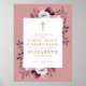 Denna moderna eleganta rosa blomster första heliga kommunion välkomstskylt kan anpassas med din information i modern dammig ros typografi. Designad av Thisisnotme