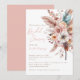 Rosa Boho Flower & Feathers Elegant Möhippa Inbjudningar